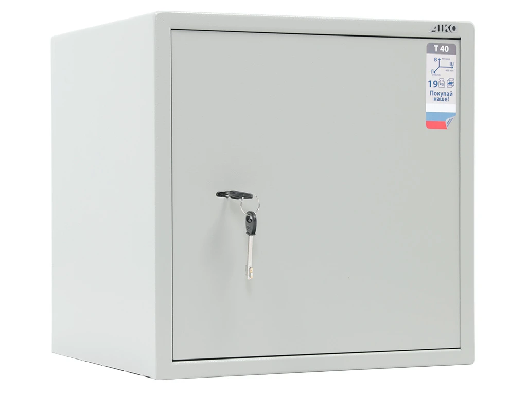 - — Офисный сейф Aiko T-40 имеет сертификат соответствия стандартам ГОСТ на начальную устойчивость ко взлому и соответствует требованиям МВД РФ к хранению огнестрельного оружия.