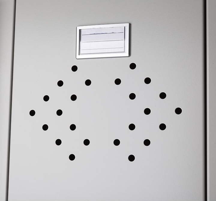 - Дверь шкафа снабжена системой вентиляционных отверстий в нижней и верхней части шкафа.